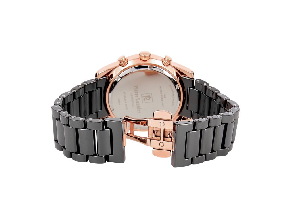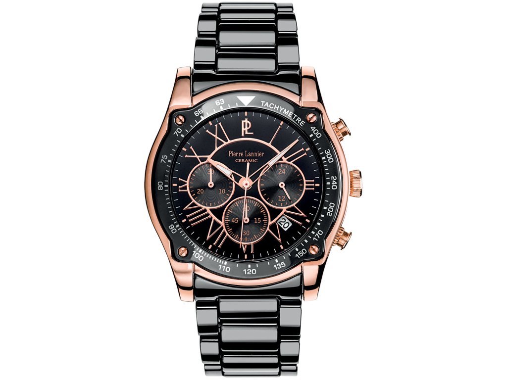 Pánské hodinky Pierre Lannier 219D039 s chronografem. Řemínek je keramický, černé barvy. Vodotěsnost hodinek je do 50 m. Průměr ciferníku 43 mm. Hodinky jsou dodávány v originální krabičce Pierre Lannier.
